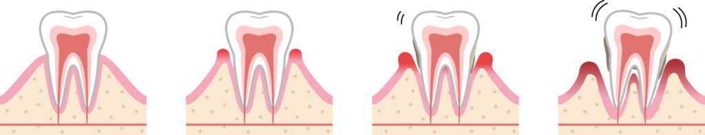 Η περιοδοντίτιδα είναι η εξέλιξη της ουλίτιδας, με προσβολή πλέον όλων των ιστών που συγκρατούν το δόντι. Τα συμπτώματα της περιοδοντίτιδας εκτός από την αιμορραγία και το οίδημα είναι η δημιουργία θυλάκων καθώς και η κινητικότητα, μετακίνηση, έως και απώλεια των δοντιών λόγω έλλειψης οστικής στήριξης.